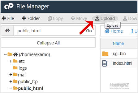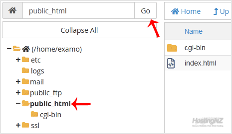 4. Navigate to the directory where you want to upload your files. For example, should you wish to upload your file to the public HTML folder, you need to go to /public_html first. On the left side, you can see a list of directories. Double Click on the public_html folder.