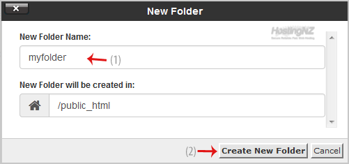 5. In the New Folder Name field, enter your folder name like my-folder (without the quotes). Then click on the Create New Folder button.
