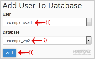 3. Scroll down to the end of the page and under Add User to Database, select a user from the dropdown list, and then choose a Database from the list.