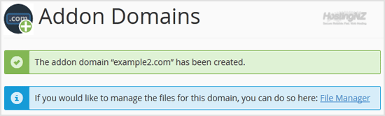 New Domain Name: Your Addon domain name like example2.com