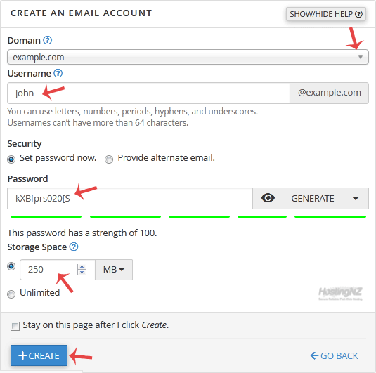 Storage Space: Enter the amount of storage space or select the Unlimited option.