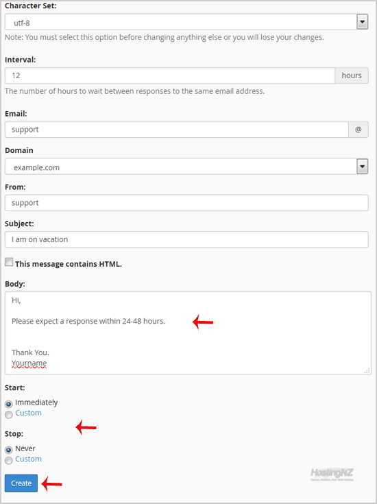 4. In the Interval field, specify the number of hours you wish the autoresponder to wait between responses to the same email address.