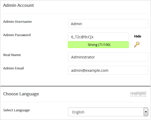 • Admin Email: Your e-mail address. (Useful for administrator account password reset, notification, etc.)