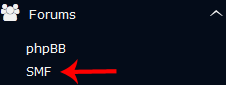 5. On the left side of your screen, you should locate the Forums category. Click on it and then click on the SMF link that will appear.