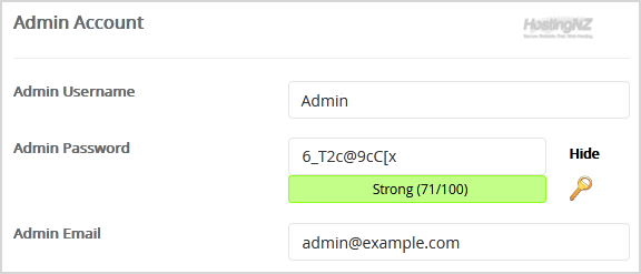 9. Under the Admin Account field, enter the following information: