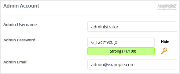 • Admin Username: Your new Concrete5 username (for security reason do not use the Administrator or the Admin username.)