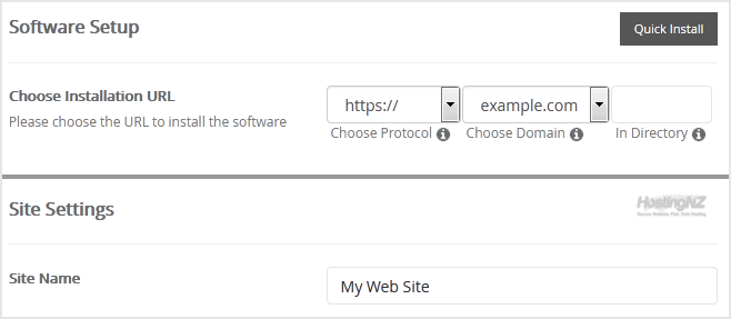 - Choose Installation URL: Choose the appropriate protocol/domain. Inside the "In Directory" field, should you want to install this in a directory, i.e., example.com/directory, enter the directory name. Otherwise, leave it blank to install in your main domain, i.e., example.com