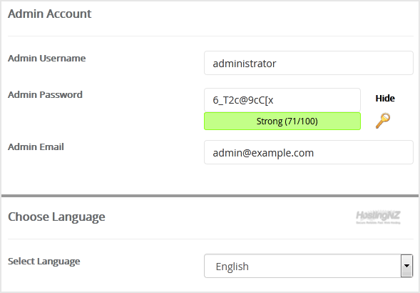 - Admin Username: Your new CMS Made Simple username (for security reason do not use the Administrator or the Admin username.)