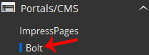 4. On the left side of your screen, you should locate the Portal/CMS category. Click on it and then click on the Bolt link that will appear.