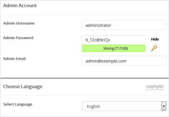 • Admin Username: Your new Microweber username (for security reason do not use the Administrator or the Admin username.)