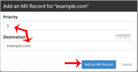4. Click on the MX Record, and a small window will open. Please enter the required details in it.