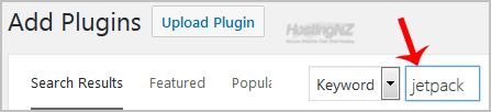 3. In the Search Plugin box, enter the name of the plugin you wish to install, such as Jetpack, and press enter.
