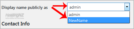 4. In the option Display name publicly as, choose your newly added nickname from the drop-down menu.