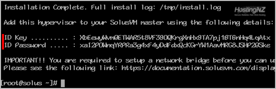 Step 3: Once it completes, it will show you the Slave keys and further instructions for your virtualization type. Now you can use these keys to add a node in your SolusVM Master panel. You will need a SolusVM Slave license for each node.