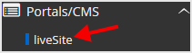 4. On the left side of your screen, you should locate the Portal/CMS category. Click on it and then click on the liveSite link that will appear.
