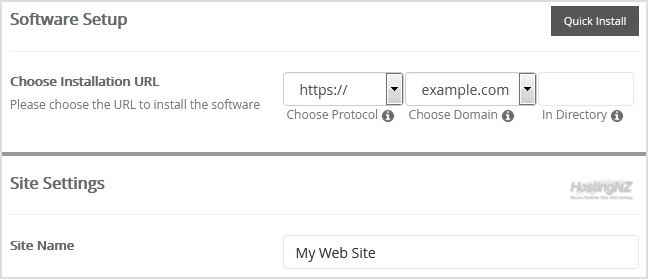 • Choose Installation URL: Choose the appropriate protocol/domain. Inside the "In Directory" field, should you want to install this in a directory, i.e., example.com/directory, enter the directory name. Otherwise, leave it blank to install in your main domain, i.e., example.com
